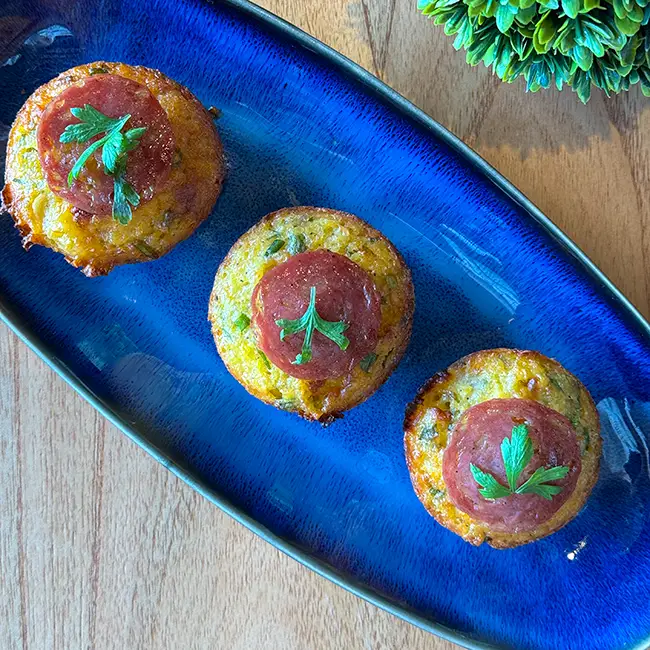 Sopa paraguaia, torta de milho e queijo tradicional do Paraguai, servida com salame regional e queijo colonial, uma homenagem à culinária local. (lactose/carne de porco)